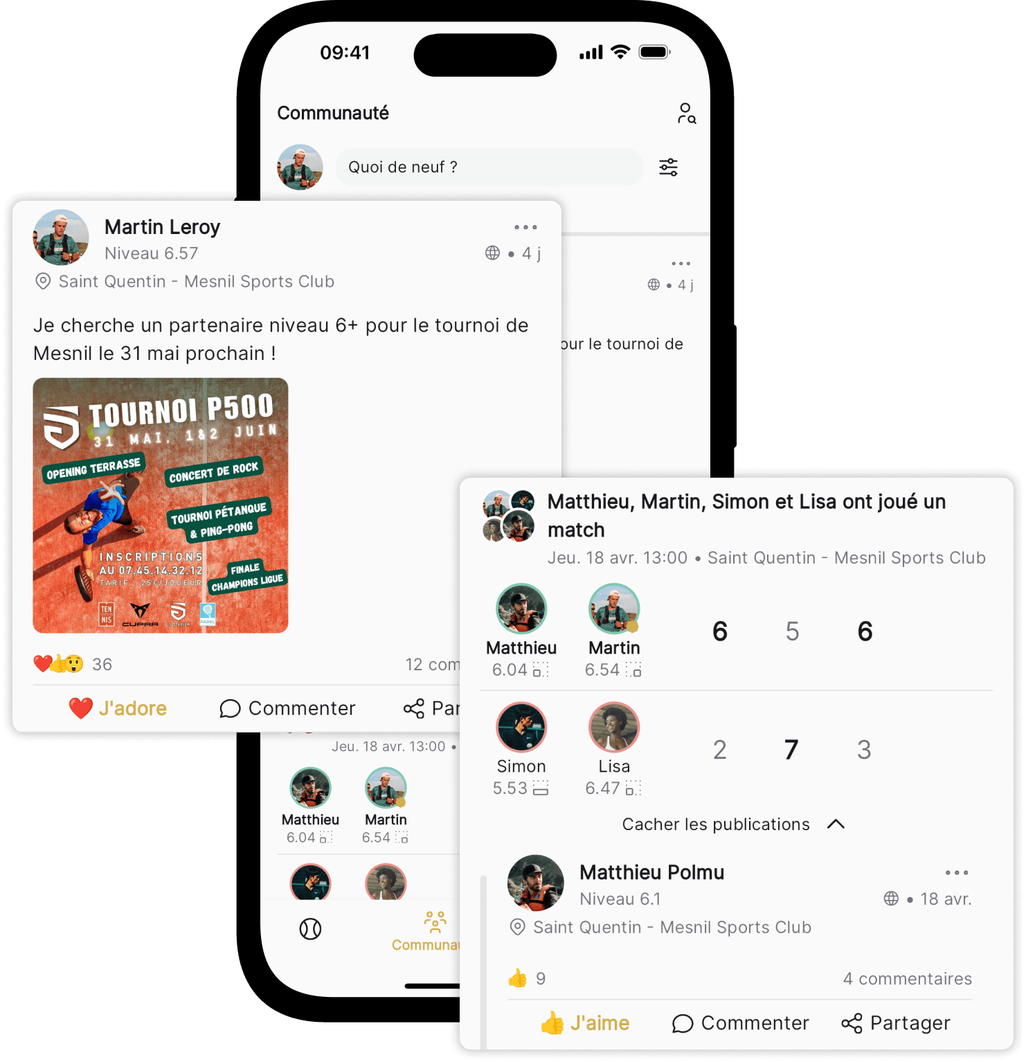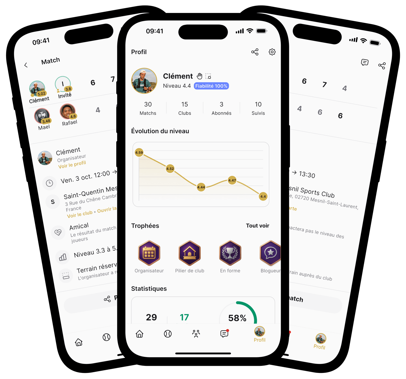 Trouve facilement des matchs autour de toi, rejoins des clubs, découvre les tournois à venir, connecte-toi à d'autres joueurs et suis ta progression au fil des parties.